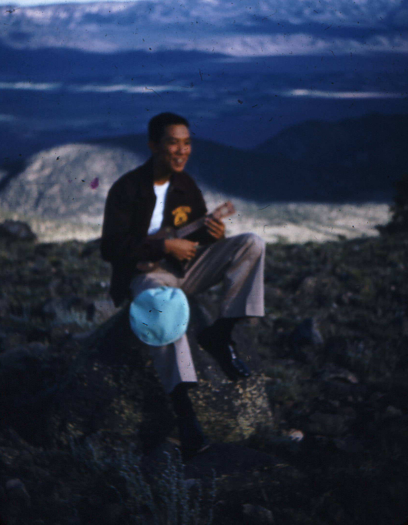 Well, I surely remember that day on the mountain. Why? Paul’s friend from Hawaii serenaded us with his ukulele and his voice. Golly, didn’t we have fun back in those care-free days? Natasha Thomas, Clyde Whittaker, Keith Dalton, Helen Horton and the girl with her I can’t remember. Paul was there but he was doing the photography; I was with Paul so he wasted more film on me. Can’t remember the guy’s name from Hawaii–Paul will remember. I, too, took pictures with that fancy(haha) camera I had in my hand–looked at them when packing up to move.